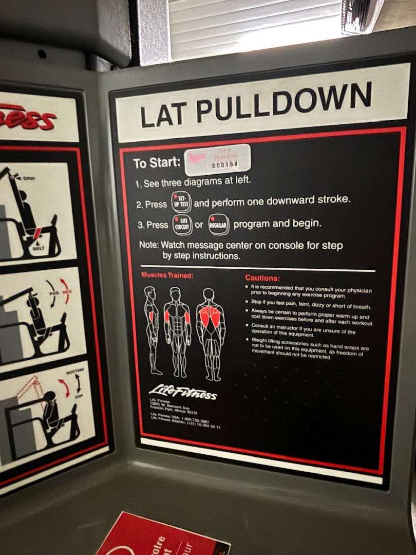 Online since 22 September 2025Lat pulldown machine of the brand Life Fitness. Functional. *This Life Fitness equipment is designed to be plugged into a wall outlet