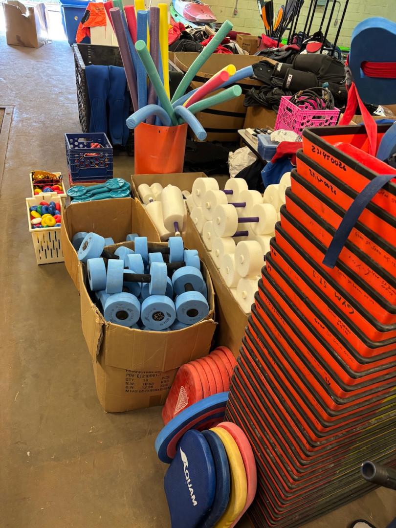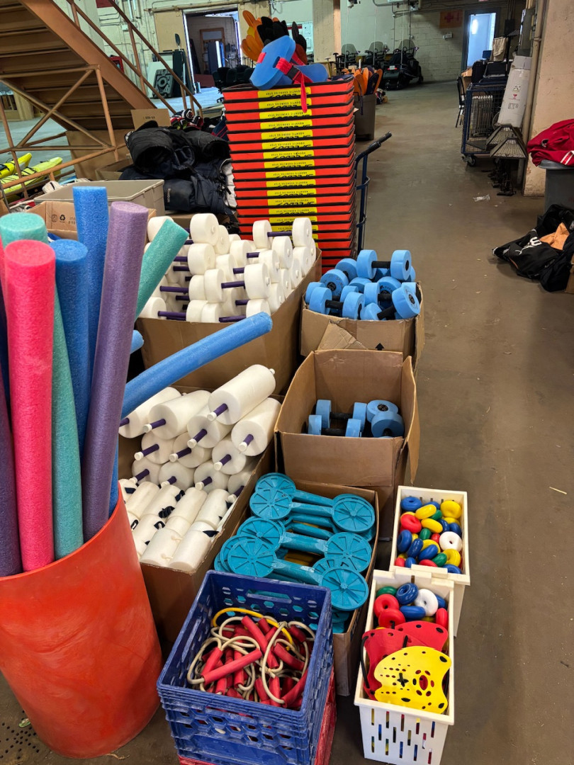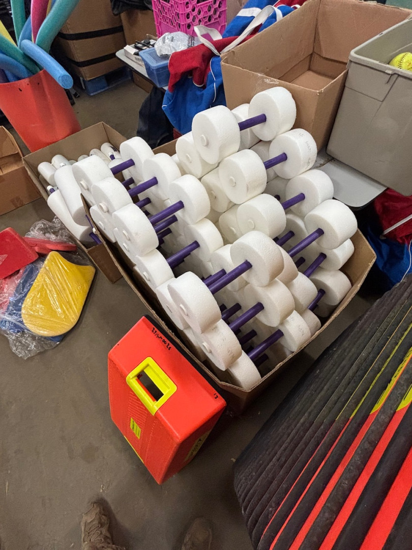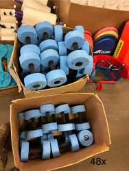 Online since 22 September 2025Equipment for Aquaforme containing: 29 step speedo, 55 weights (pairs), 19 pull-buoy, 11 kick rollers, 11 boards, floating noodles and floating donuts. Your bet is for the batch