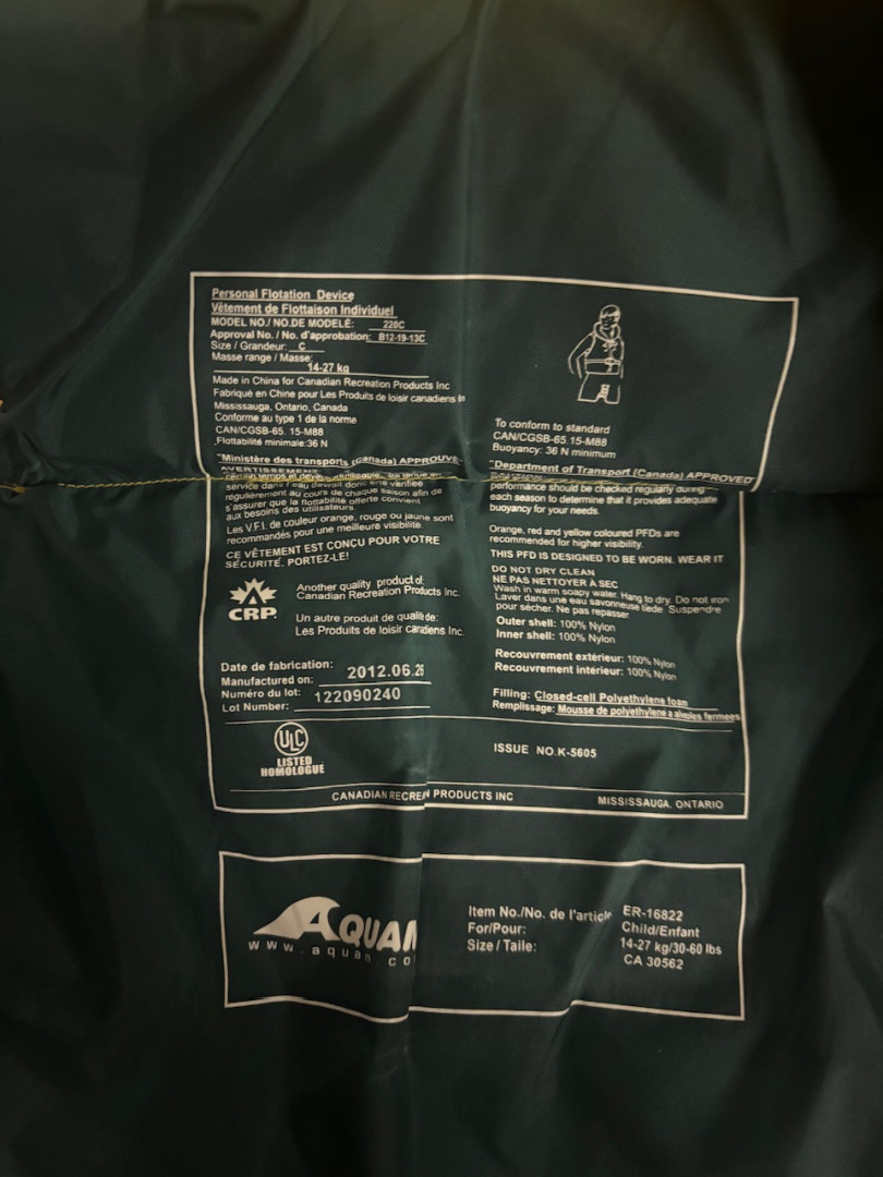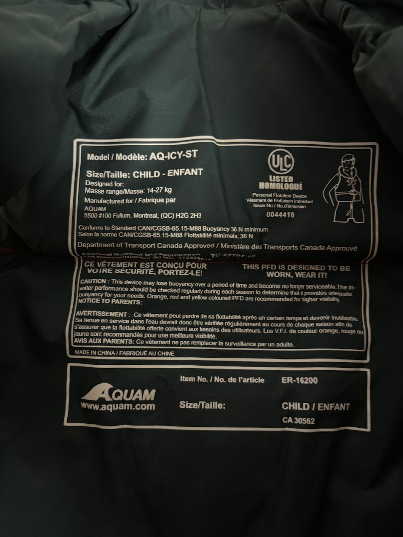 Online since 22 September 2025Child Life jacket set; 2x jackets (baby) 20/30lb, 11x jackets (child) 20/30lbs, 12x jacket (child) 30/60lbs and 2x jacket (young) 60/100lbs. Manufacturing date between 2012 and 2014. Your bid is for the batch