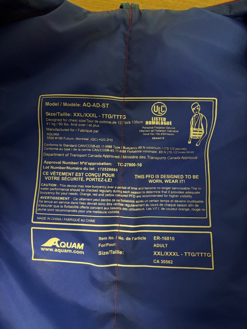 Online since 22 September 2025Aquam life jacket, several sizes (see photo), manufacturing date 2016. Your bid is for the batch.