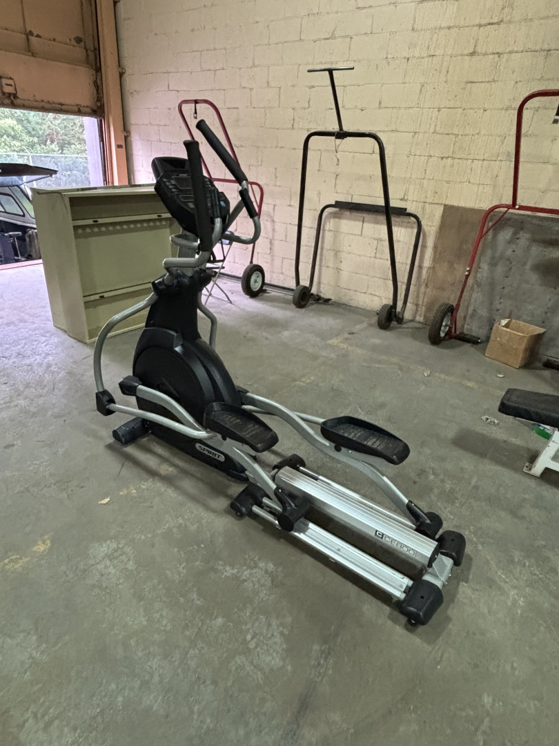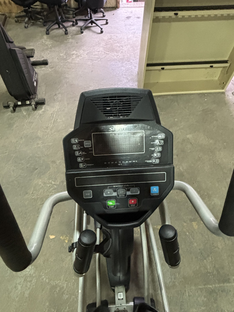 Online since 22 September 2025Elliptique Spirit with a small break at the base of the elliptic (photo) and the heart rate sensors integrated into the handlebar have been torn off. In good general and functional condition. Self-powered (autonomous) without connection, belt transmission for pedaling, silent, 40 levels of resistance.