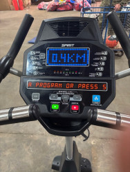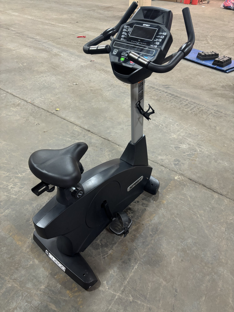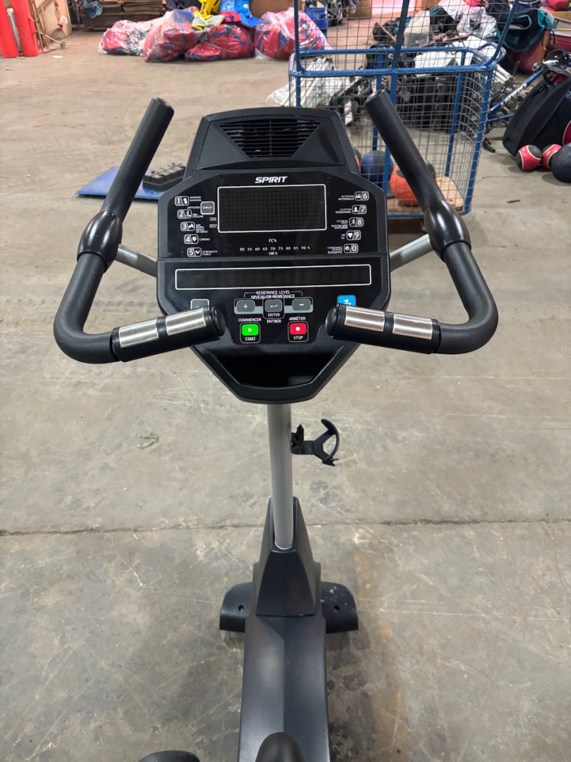 Online since 22 September 2025Spirit CU800 Upright Bike Generator power system allows for cordless operation. Contact and wireless heart rate monitoring. 30 lb flywheel with 40 levels of resistance. Large ergonomic seat for extra comfort and customizable fit. Adjustable cooling fan and storage trays. Fonctionnal