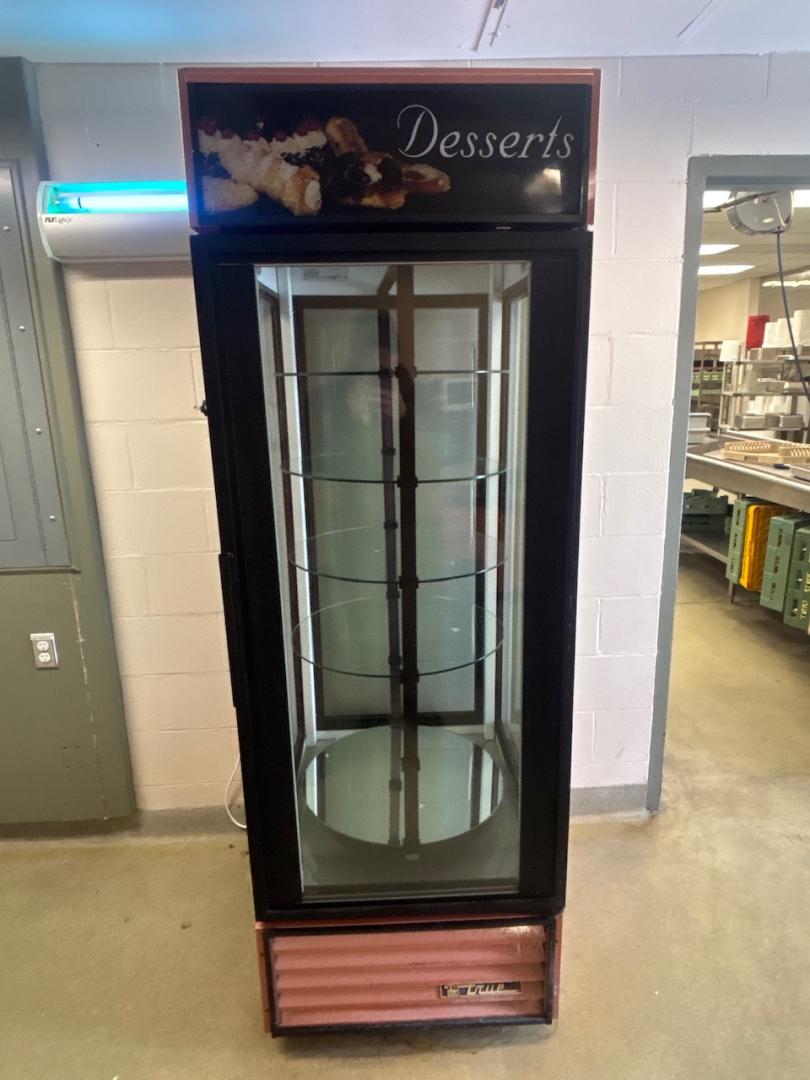 Online since 11 January 2026True brand rotating refrigerated dessert display. The refrigerator works, but the rotating tray does not. The fluorescent tubes are not working, and I haven't been able to replace or test them due to a lack of replacements. 27.5" W x 30.12" D x 78.62" H