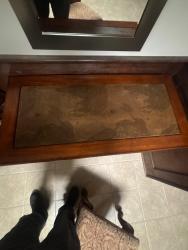 Online since 11 January 2026Solid wood console table in colonial style with finely carved details. In good condition. 48" x 23"