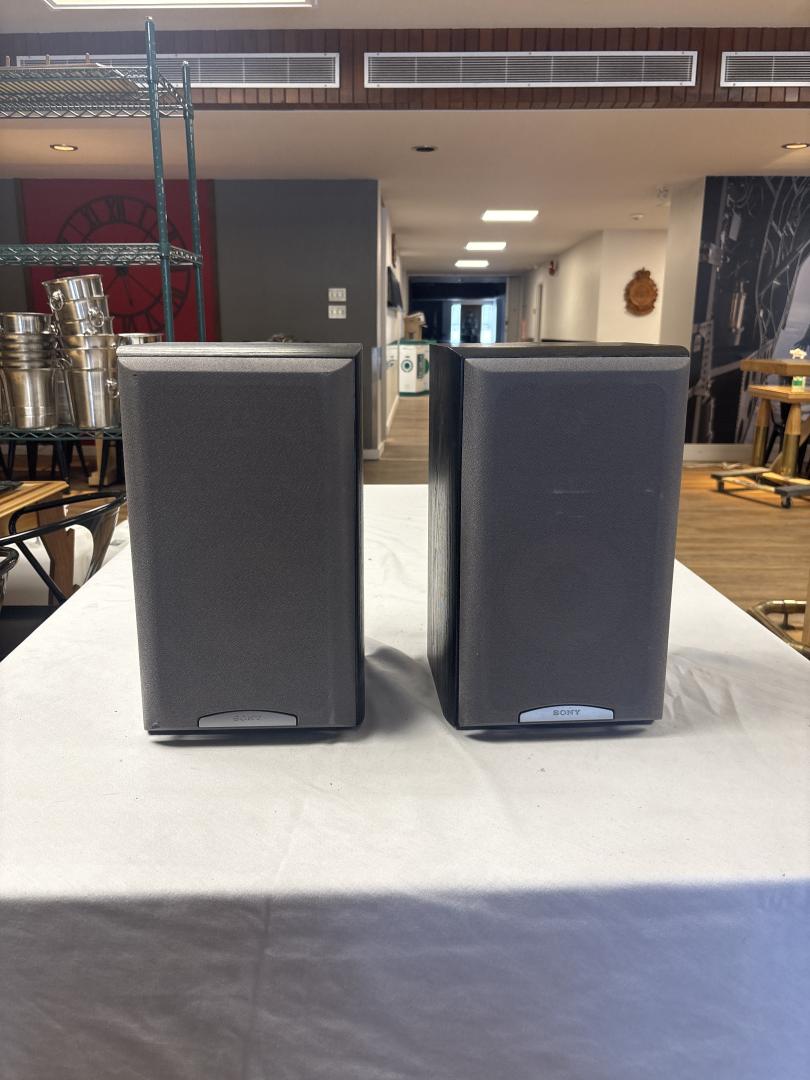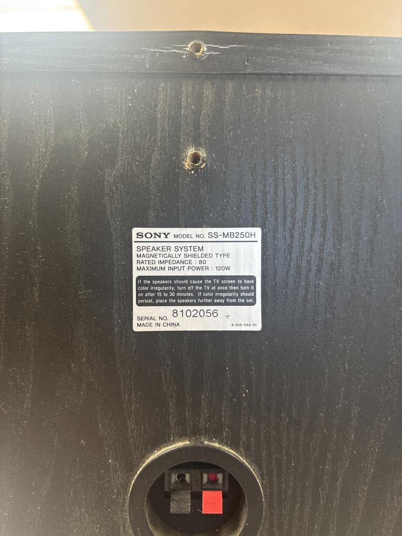 Online since 28 January 2026Pair of Sony SS-MB250H bookshelf speakers. 120W power. 8 Ohms impedance. 2-way design. They feature a yellow cone woofer and a black dome tweeter. They are in good condition.
