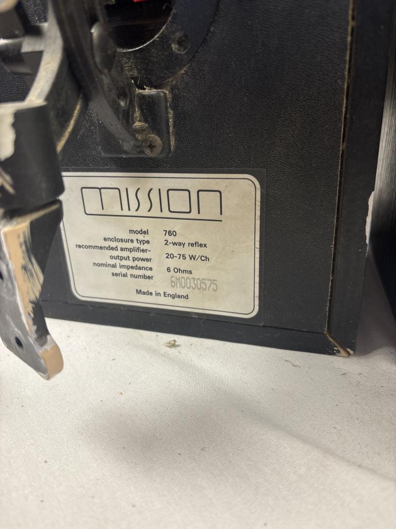 Online since 28 January 2026Mission model 760 speaker. They were functional when disassembled; the protective cover is missing from one of the speakers. Sold with the wall mounts on the back. Your bet is for all 4 speakers.