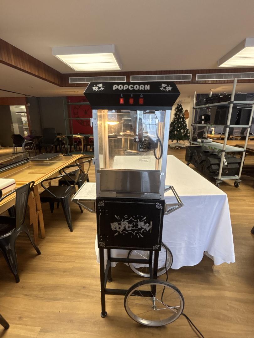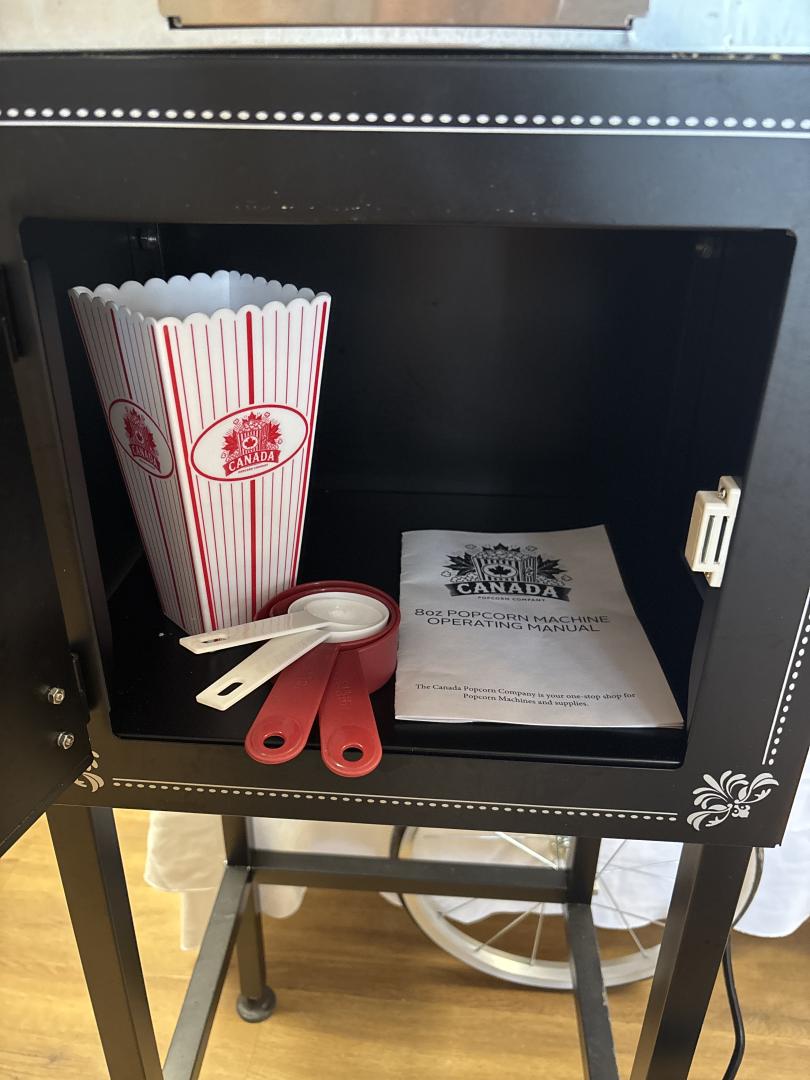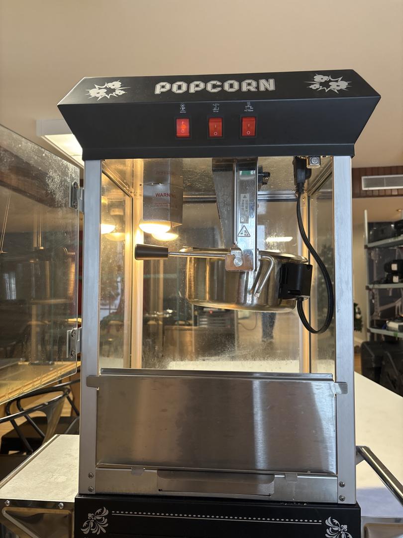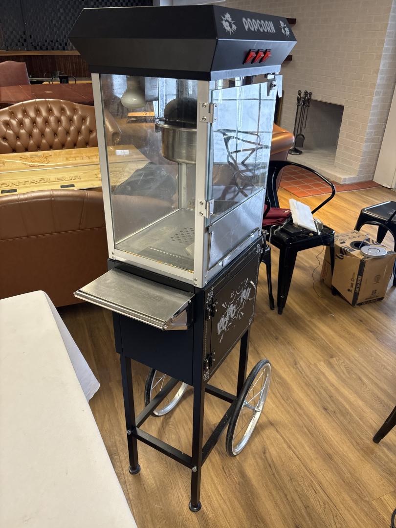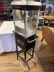 Online since 28 January 2026Movie theater-style popcorn machine with a "Snack Station" cart. It's designed in a vintage carnival style. The 8 oz stainless steel bowl can produce approximately 3 gallons of popcorn in minutes. It includes a warming tray to keep the popcorn warm. Independent switches control the light and heat. Functional
