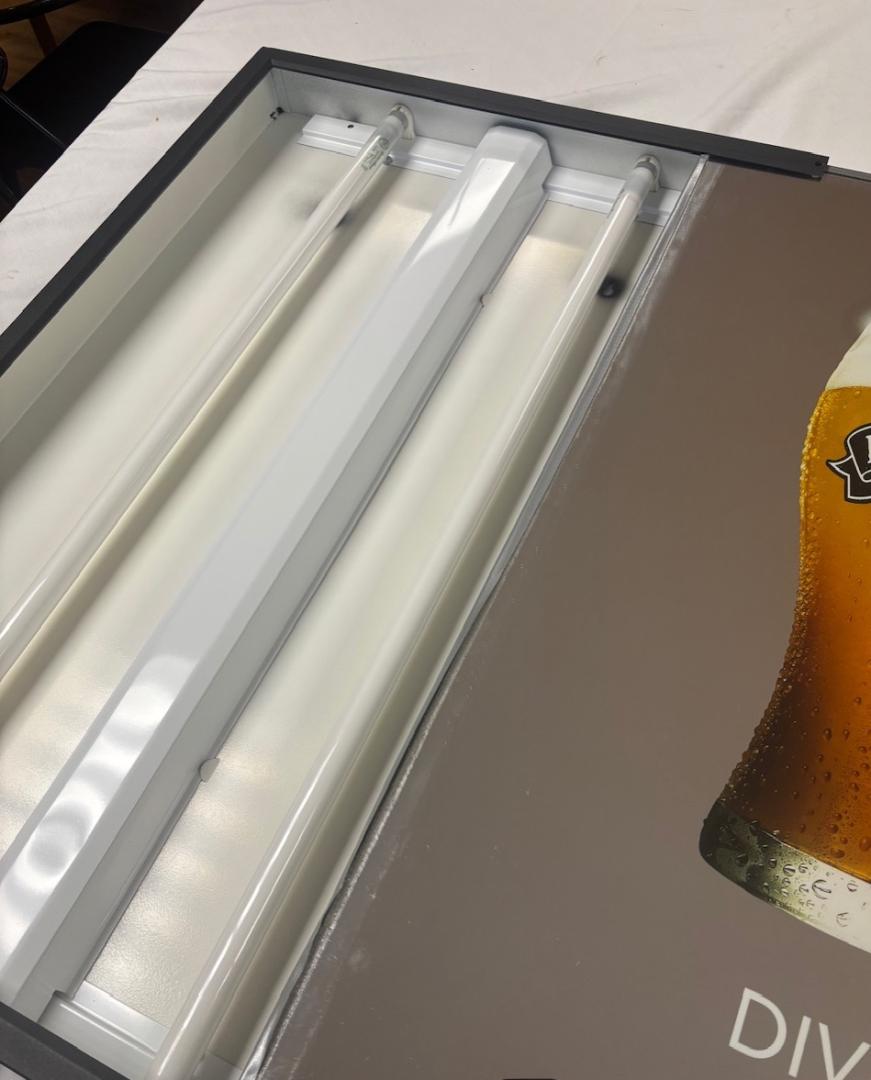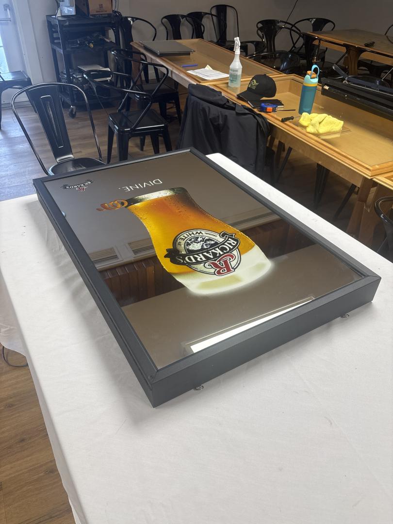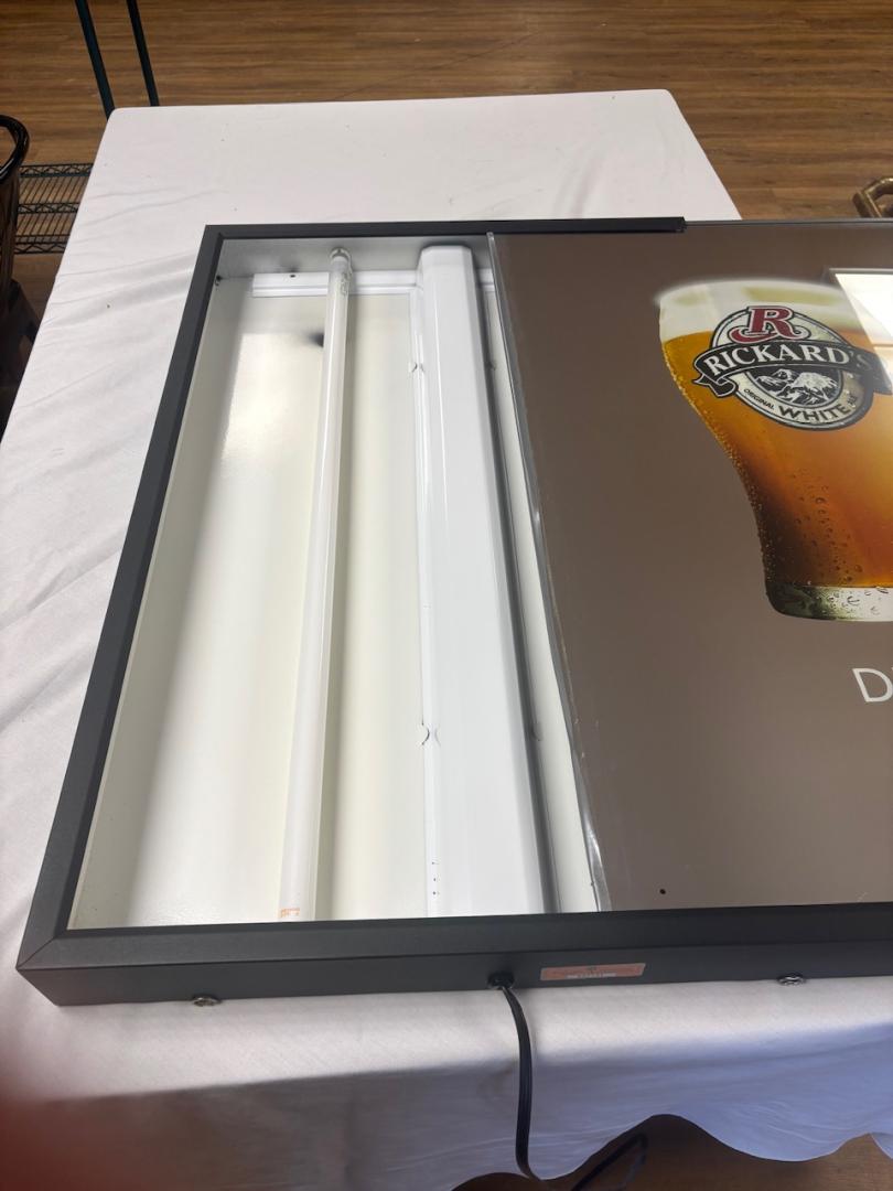 Online since 28 January 2026Illuminated advertising mirror for Rickard's White Divine beer. The neon lights are no longer working.