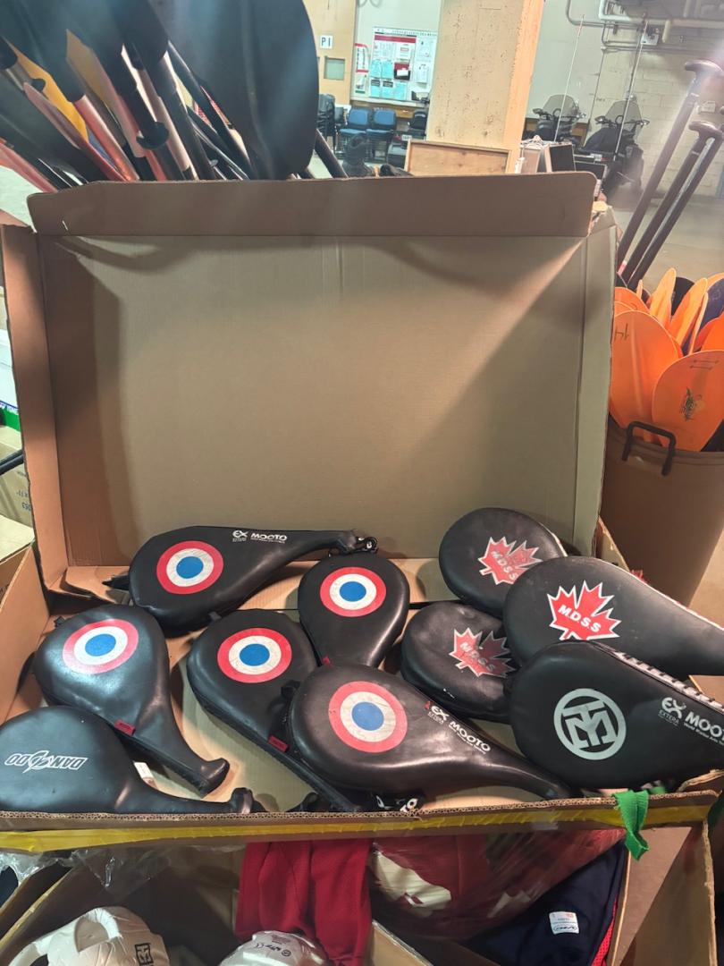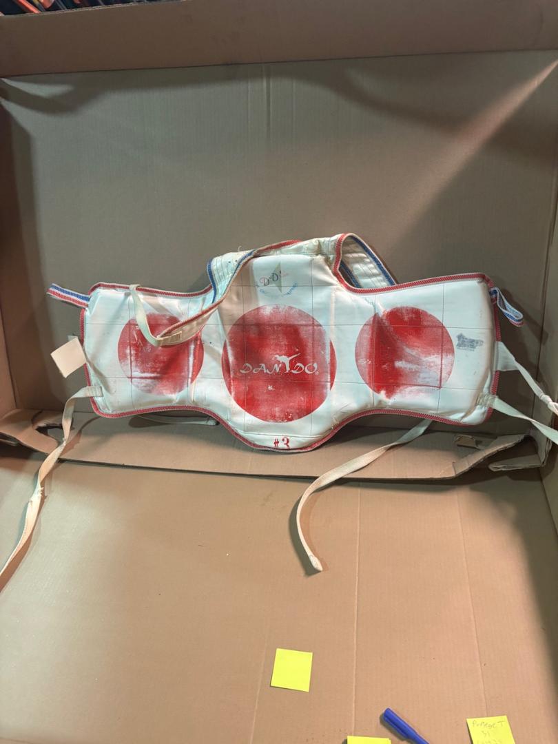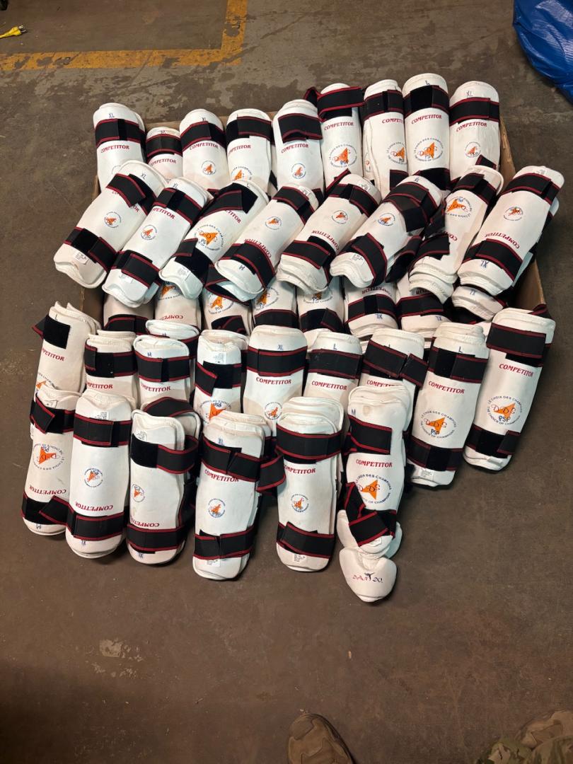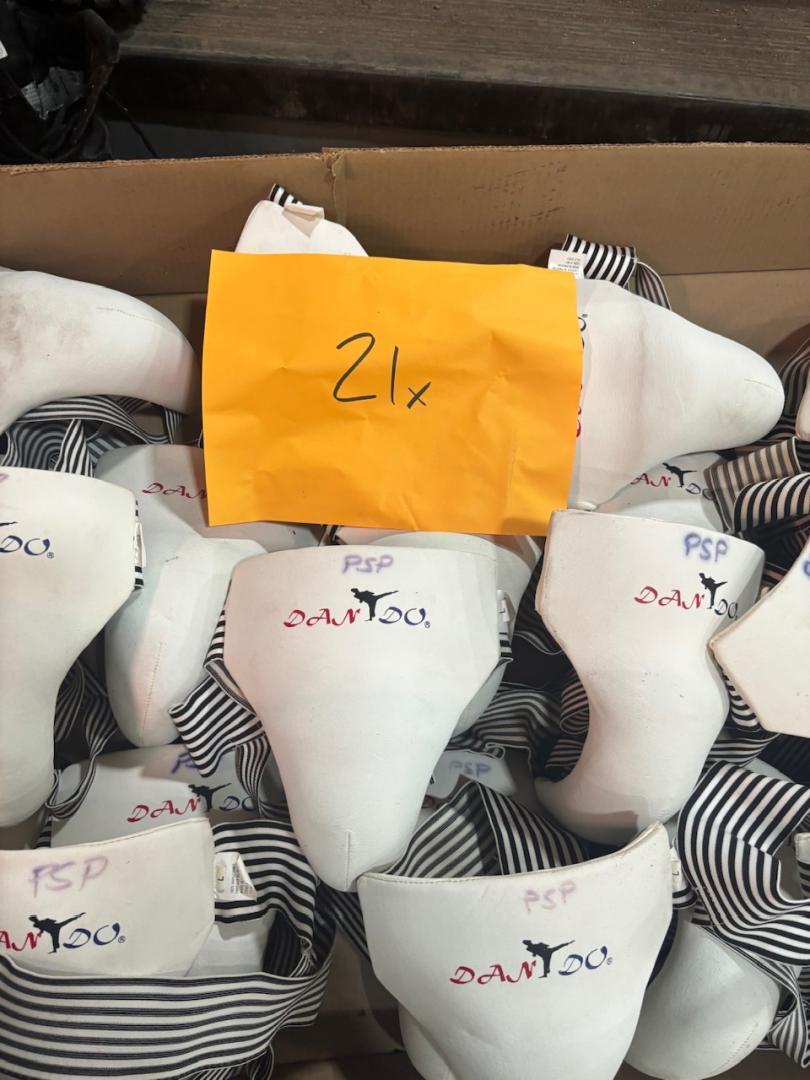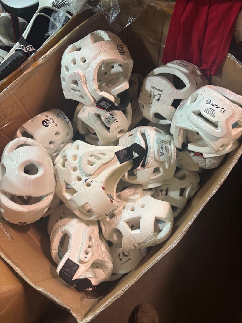En ligne depuis 05 novembre 2025Équipement pour arts martiaux ; 23 casques, 18 visières, 8 plastrons, 10 doubles claquettes, 25 paires de protège-cuisse, 40 paires de protège-tibia, 21 protège-parti intime et 6 coussins de frappe . Votre mise est pour le lot